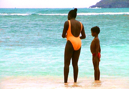 Mother and child at Caravelle Beach in Sainte-Anne, Guadeloupe